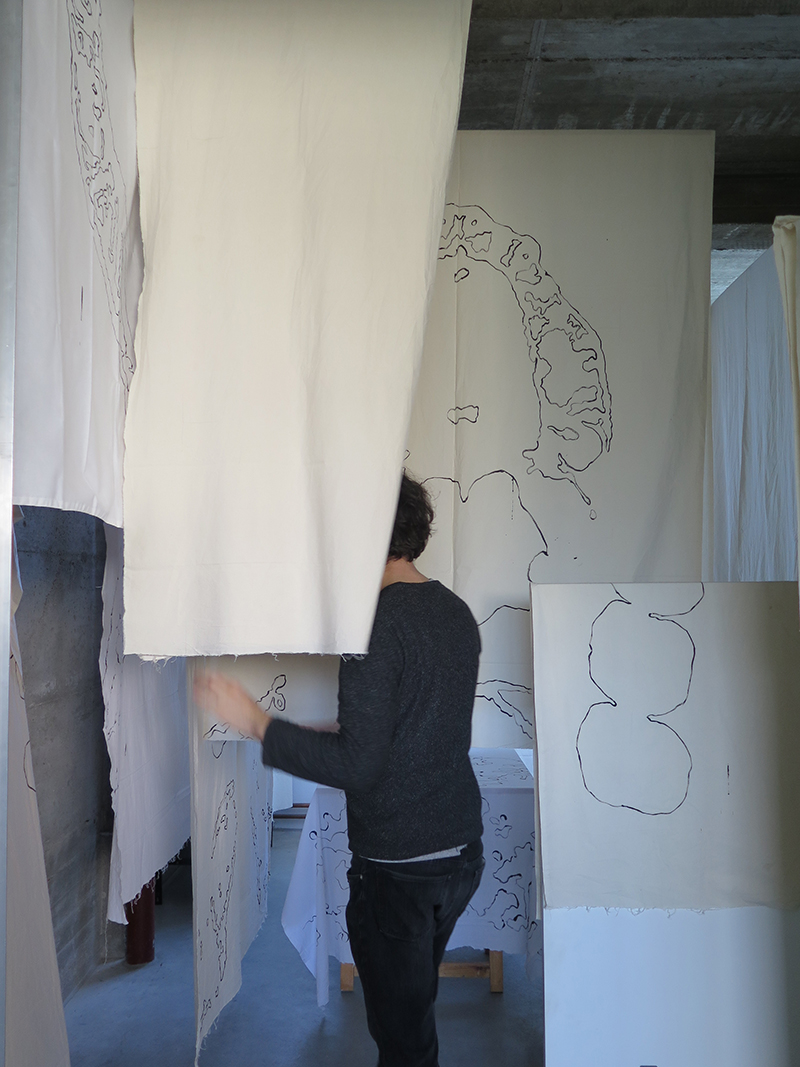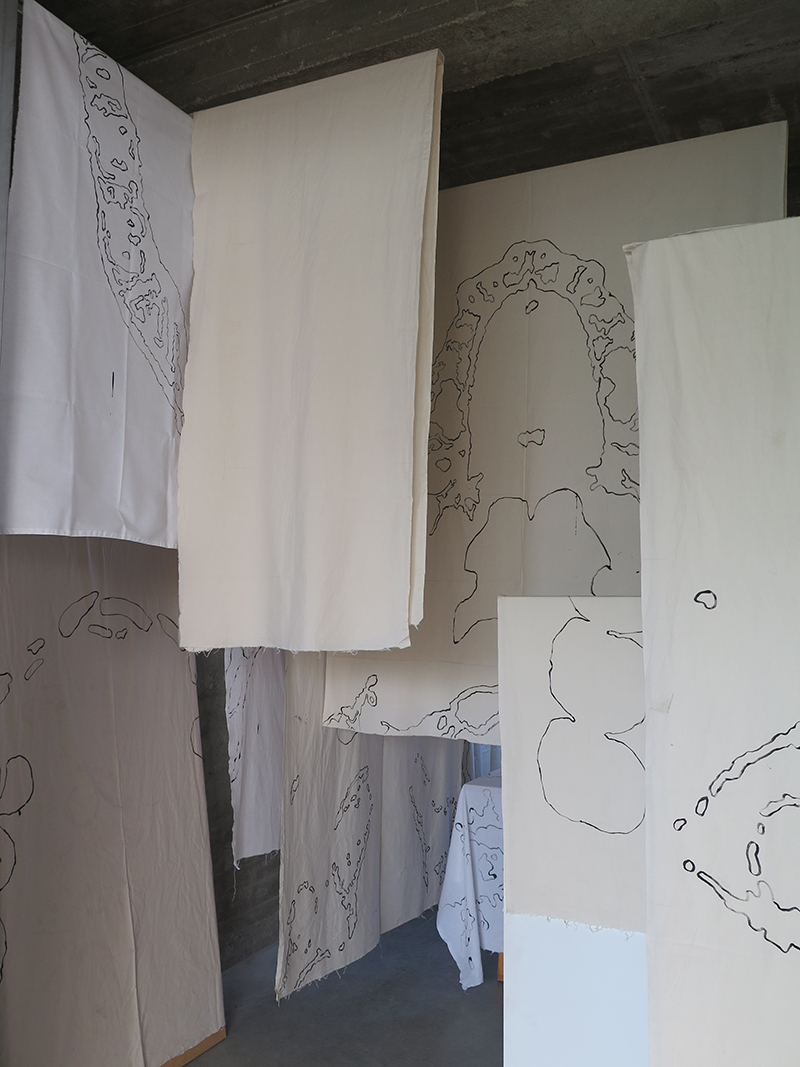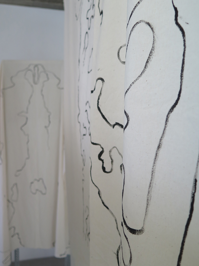 The work Brace grasped at the threads coming loose from the fabric of concise interpretation of the self as the result of an upbringing, and a formal education as an artist. The components of the piece – an essay in an experimental format, and the room installation echoing the format of the text and vice versa – built up a reflection on art education and the crevices of the psyche from a microcosm of heavily intertwined aspects of my own life, past and present. The starting point for the work was a dream, a valve for the overwhelmed mind that allowed me draw the connection between my body, mental health, and artistic output, as well as structure the various subjects of the artwork according to the several possible dream interpretations.